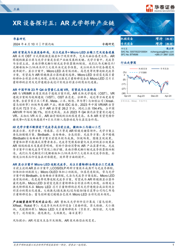 【华泰证券】【20240410】工业行业专题研究-XR设备探讨五:AR光学部件产业链-31页 行业研究