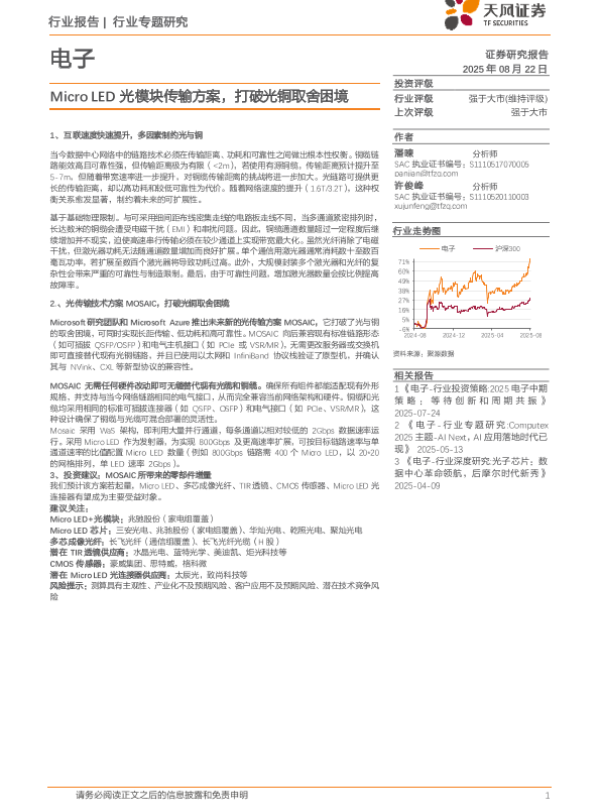 【天风证券】【202508】电子行业专题研究:Micro+LED光模块传输方案,打破光铜取舍困境-12页 证券期货研究报告