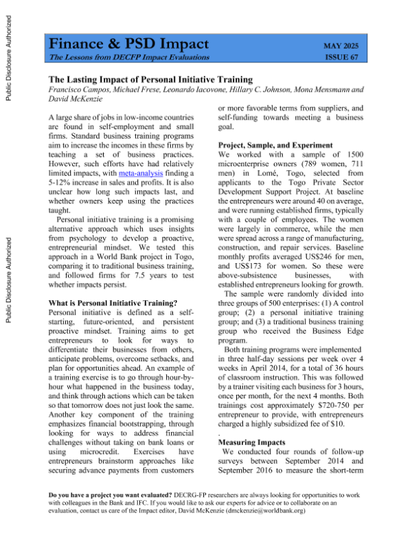 【World Bank】【2025】The Lasting Impact of Personal Initiative Training-2页 学术论文
