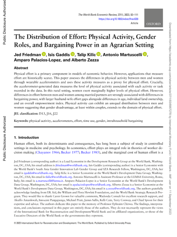 【The World Bank】【2023】The Distribution of Effort Physical Activity, Gender Roles, and Bargaining Power in an Agrarian Setting-19页 学术论文