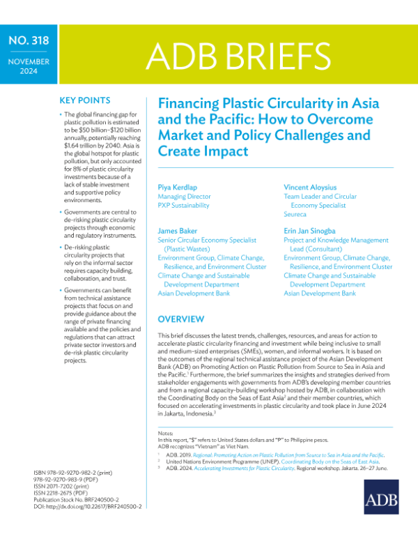 【Asian Development Bank】【202411】Financing Plastic Circularity in Asia and the Pacific How to Overcome Market and Policy Challenges and Create Impact-12页 白皮书