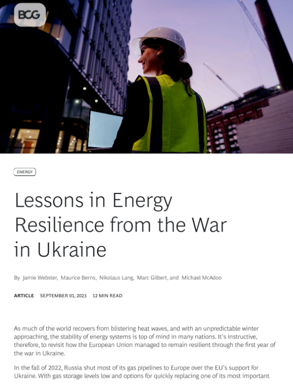 【Boston Consulting Group】【20230901】Lessons in Energy Resilience from the War in Ukraine-9页 行业研究