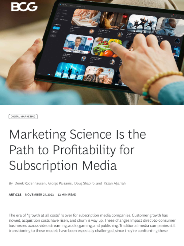 【Boston Consulting Group】【20231127】Marketing Science Is the Path to Profitability for Subscription Media-10页 行业研究