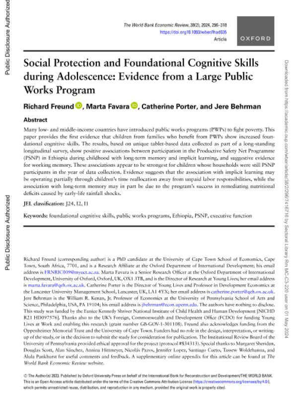【The World Bank】【2024】Social Protection and Foundational Cognitive Skills during Adolescence Evidence from a Large Public Works Program-23页 学术论文