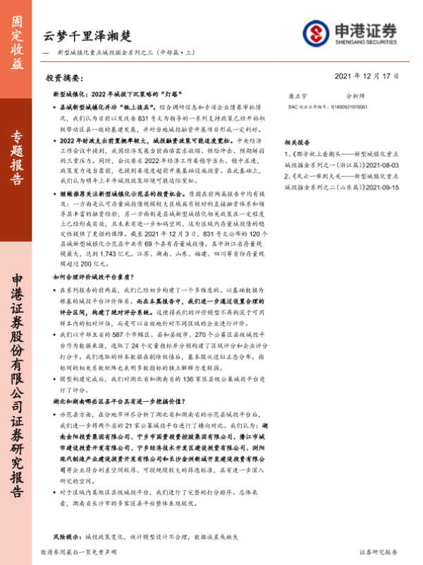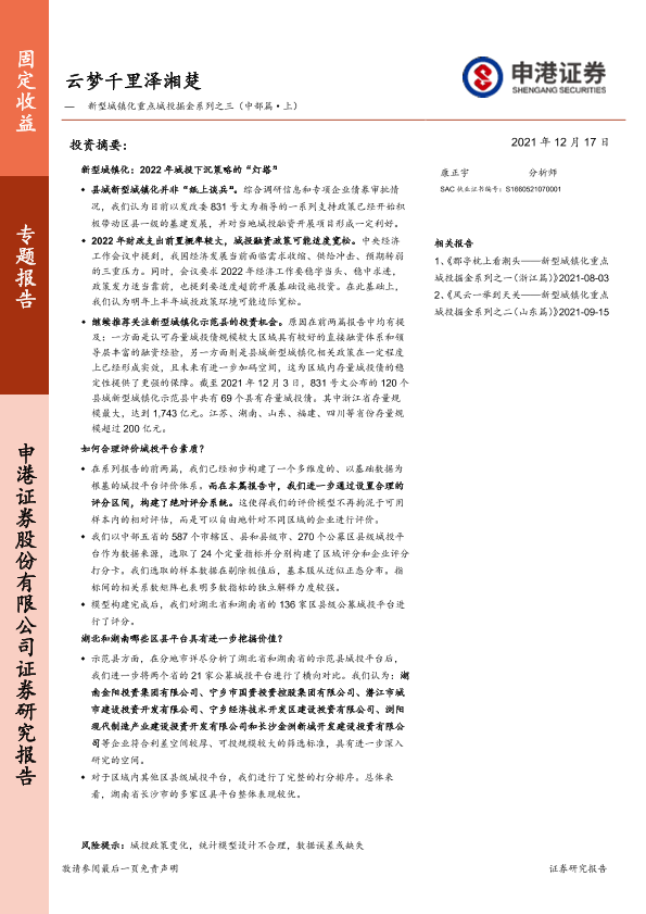【申港证券】【20211217】新型城镇化重点城投掘金系列之三(中部篇·上):云梦千里泽湘楚-73页