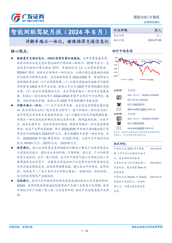 【广发证券】【20240709】计算机行业智能网联驾驶月报(2024年6月):详解车路云一体化,继续推荐交通信息化-22页