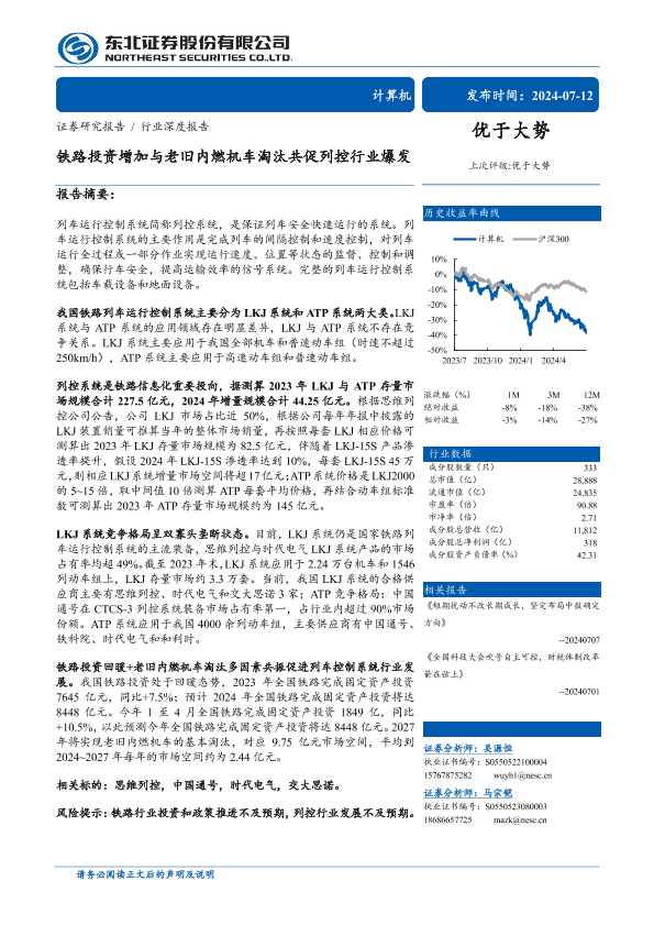 【东北证券】【20240712】铁路投资增加与老旧内燃机车淘汰共促列控行业爆发-31页