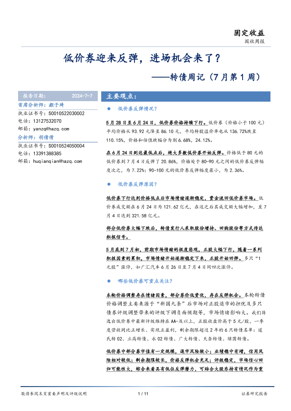 【华安证券】【20240707】转债:低价券迎来反弹,进场机会来了?-11页