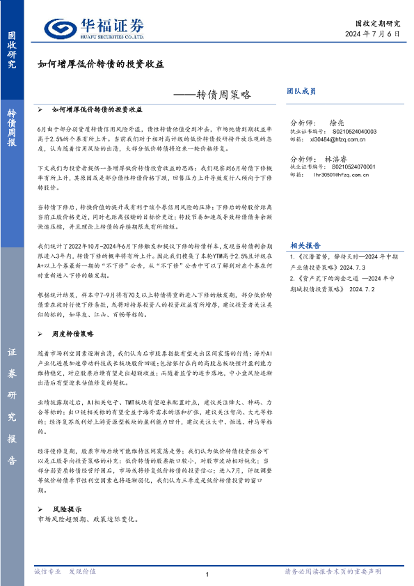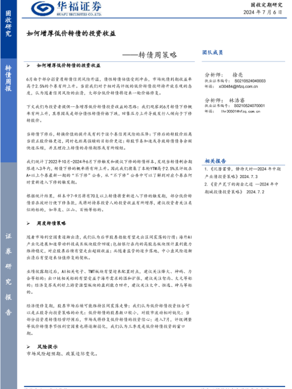 【华福证券】【20240706】转债:如何增厚低价转债的投资收益-12页