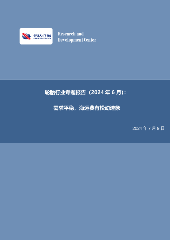 【信达证券】【20240709】轮胎行业专题报告(2024年 6月):需求平稳,海运费有松动迹象-24页