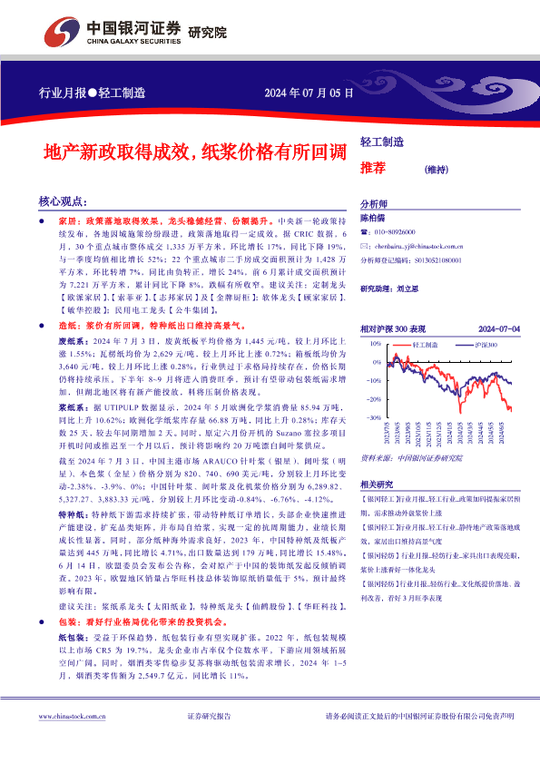 【银河证券】【20240705】轻工制造行业月报:地产新政取得成效,纸浆价格有所回调-21页