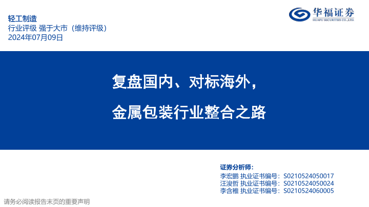 【华福证券】【20240709】轻工制造行业深度:复盘国内、对标海外,金属包装行业整合之路-47页