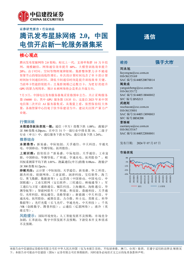 【中信建投证券】【20240707】通信行业动态:腾讯发布星脉网络2.0,中国电信开启新一轮服务器集采-11页