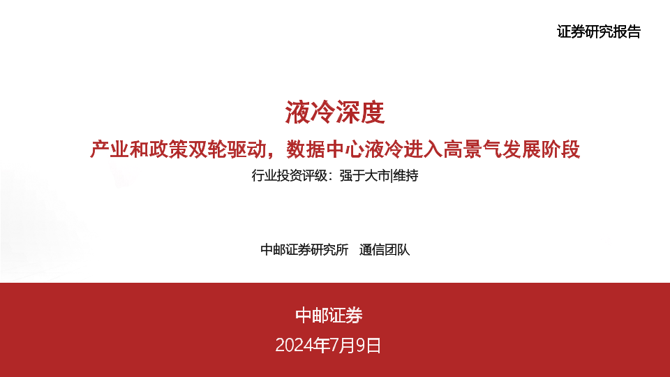 【中邮证券】【20240709】通信行业液冷深度:产业和政策双轮驱动,数据中心液冷进入高景气发展阶段-51页