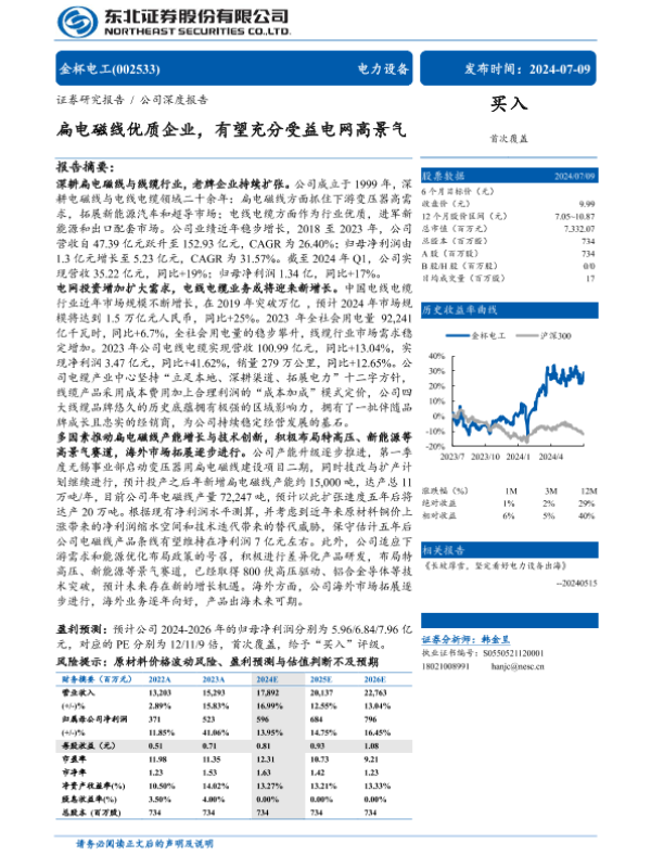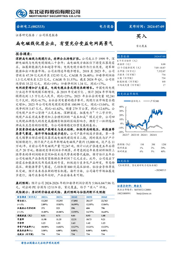 【东北证券】【20240709】金杯电工(002533)扁电磁线优质企业,有望充分受益电网高景气-31页