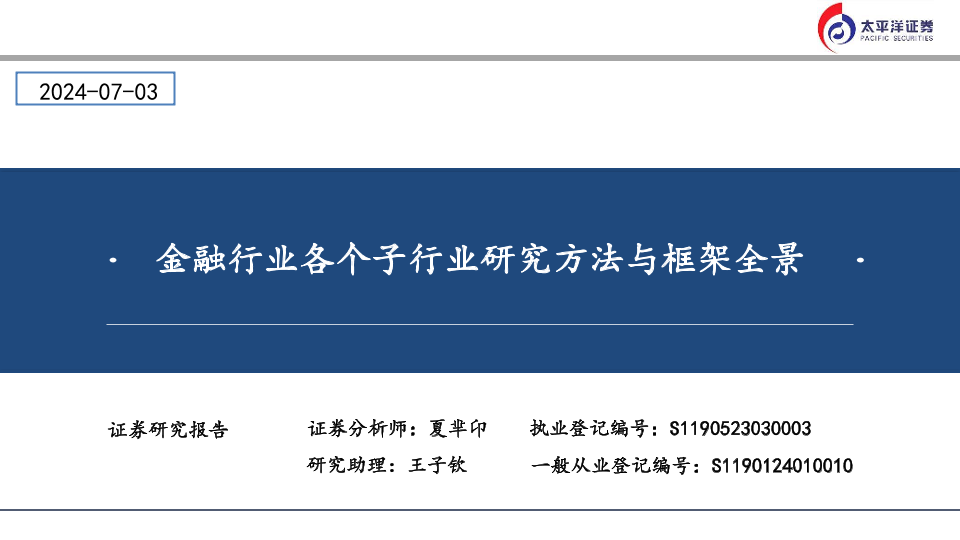 【太平洋证券】【20240703】金融行业各个子行业研究方法与框架全景-74页