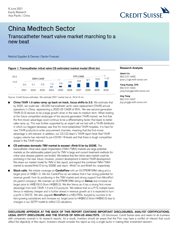 【瑞信】【20210608】中国医疗科技行业:经导管心脏瓣膜市场迈上新台阶-49页