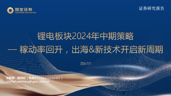 【国金证券】【20240707】锂电行业板块2024年中期策略报告:稼动率回升,出海&新技术开启新周期-33页