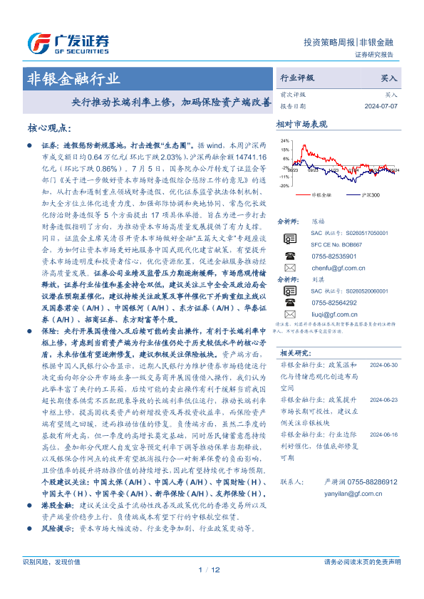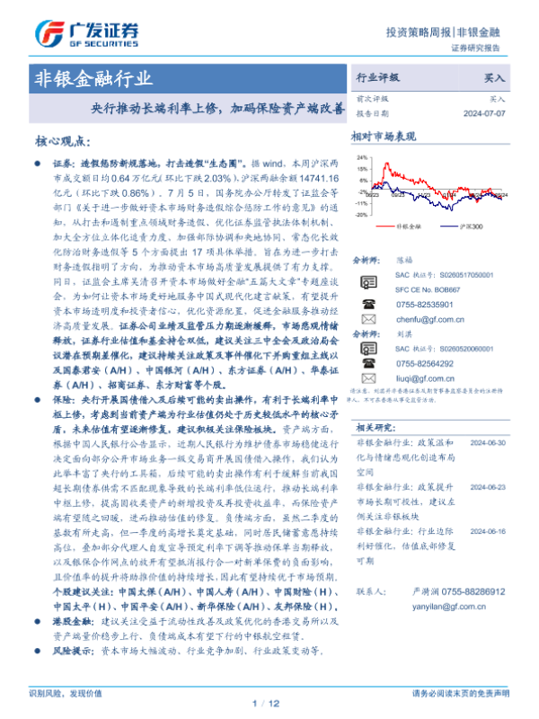 【广发证券】【20240707】非银金融行业:央行推动长端利率上修,加码保险资产端改善-12页