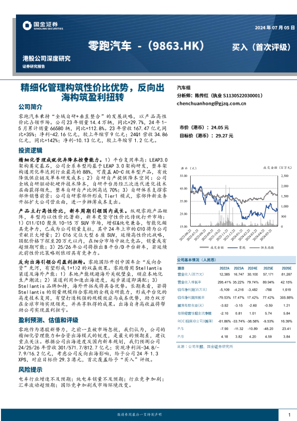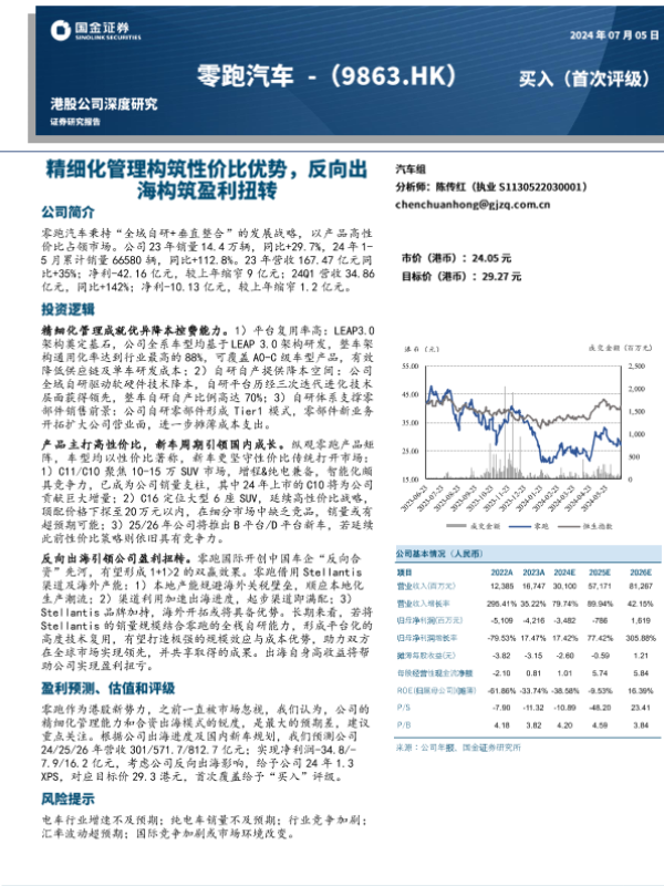 【国金证券】【20240705】零跑汽车(9863.HK)精细化管理构筑性价比优势,反向出海拉动盈利扭转-37页