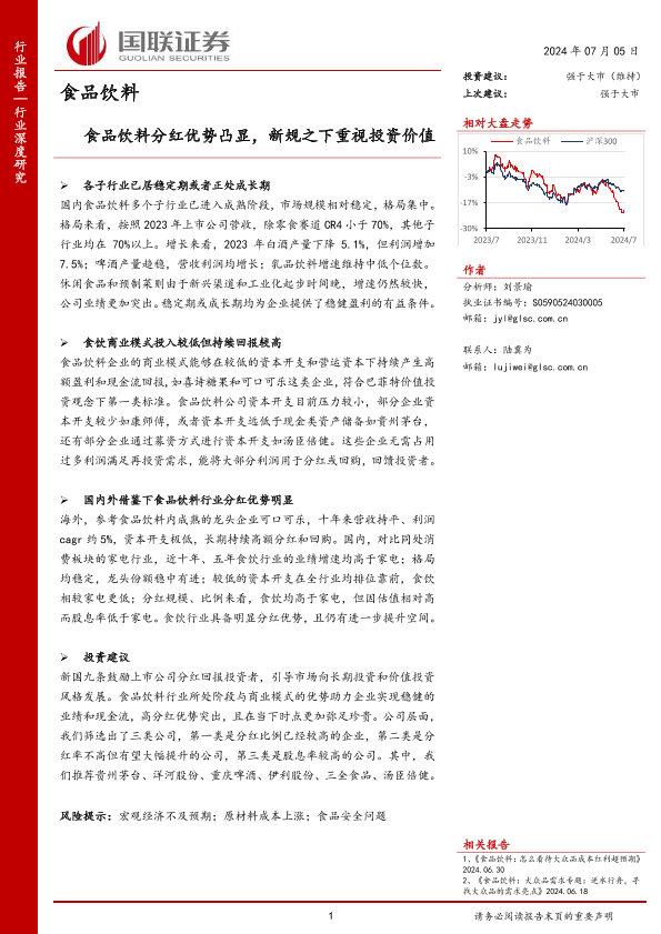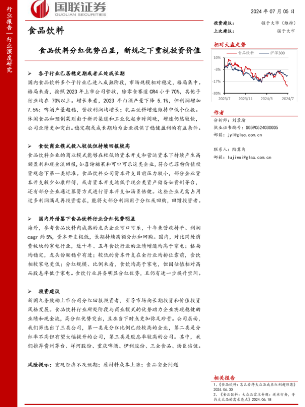 【国联证券】【20240705】食品饮料行业:食品饮料分红优势凸显,新规之下重视投资价值-26页