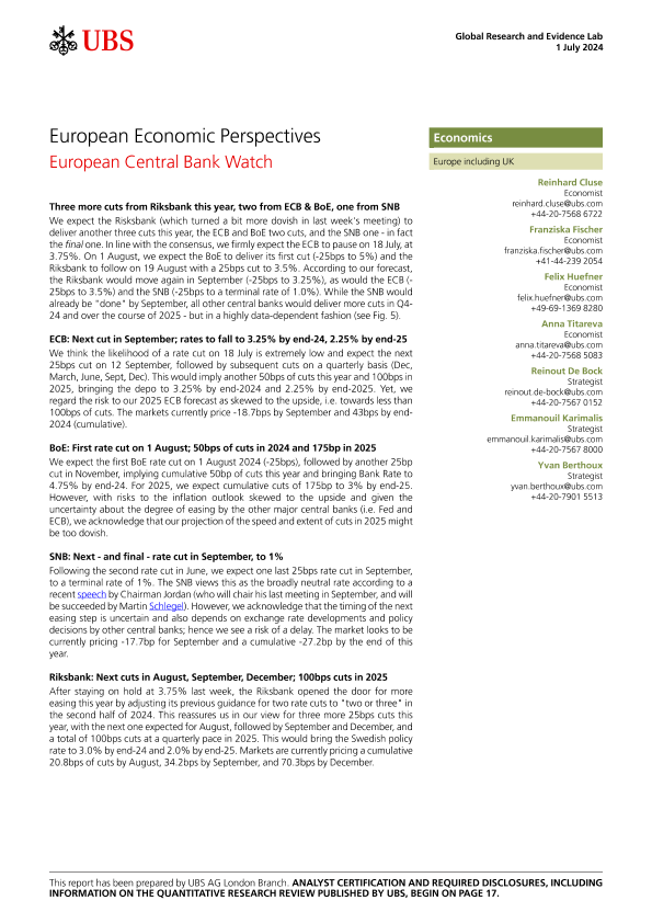 【UBS AG London Branch】【20240701】UBS Economics-European Economic Perspectives & European Central Bank Watch-21页