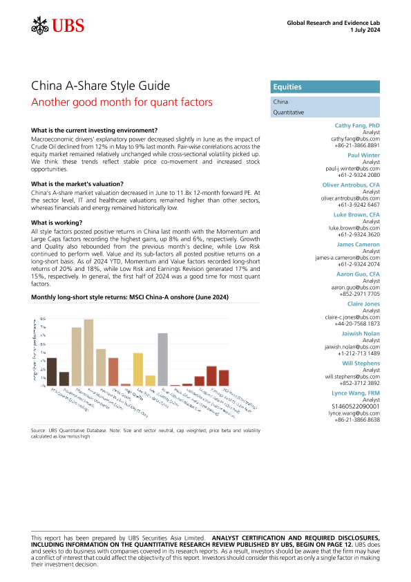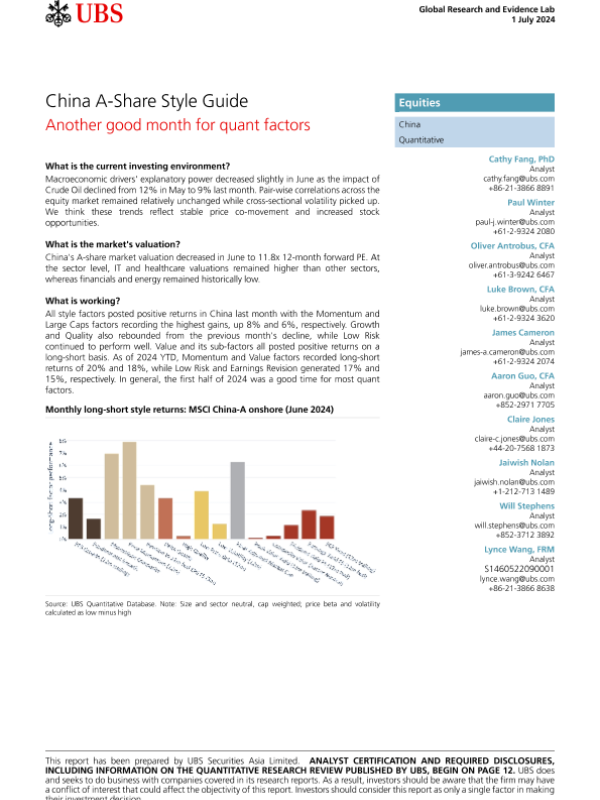 【UBS Securities Asia Limited】【20240701】China A-Share Style Guide - Another good month for quant factors-16页
