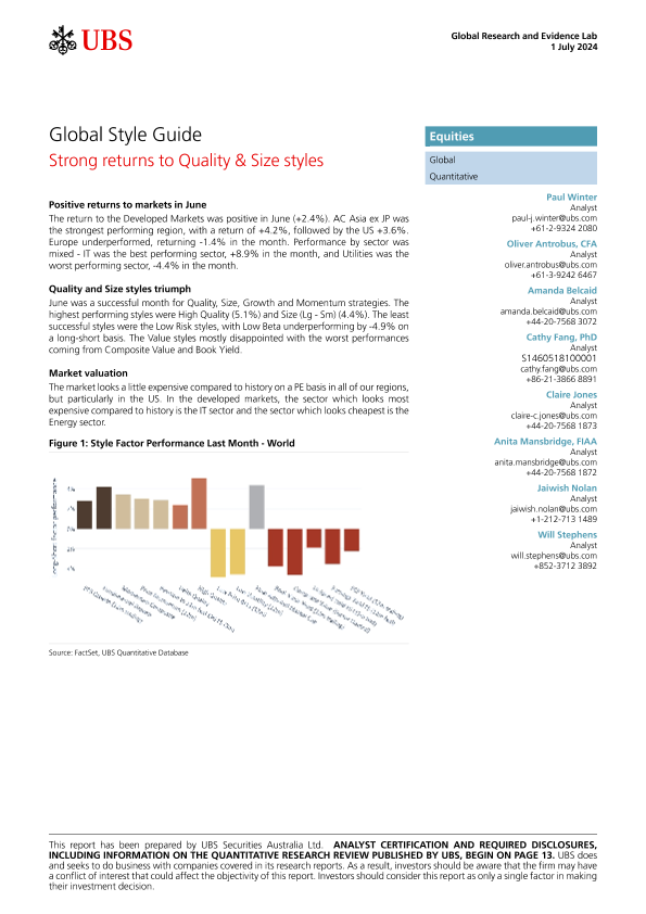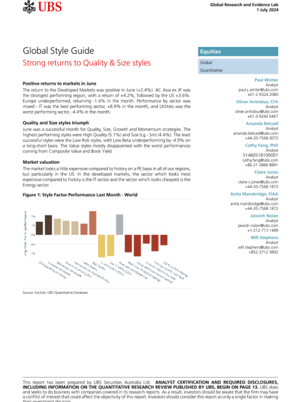 【UBS Securities Australia Ltd.】【20240701】Global Style Guide - Strong returns to Quality & Size styles-17页