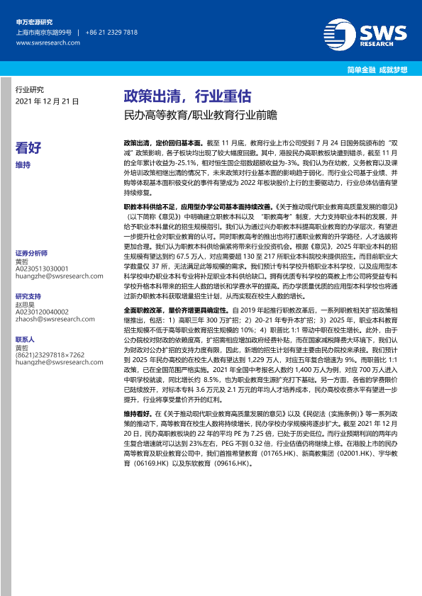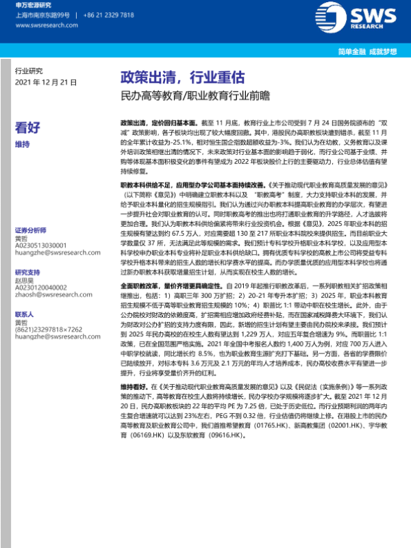 【申万宏源】【20211221】民办高等教育职业教育行业前瞻:政策出清,行业重估-28页