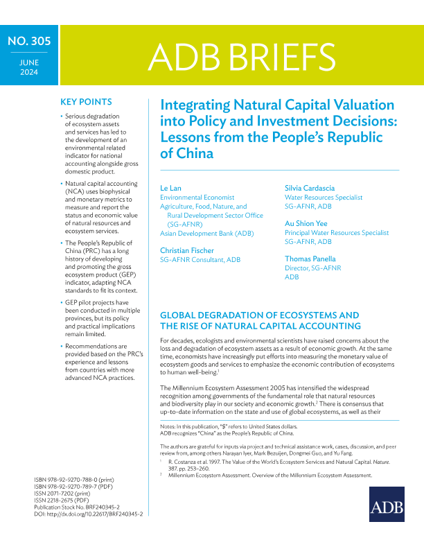 【Asian Development Bank】【202406】将自然资本评估纳入政策和投资决策:中国经验-12页