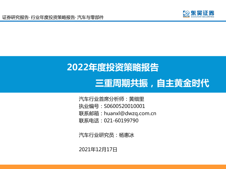 【东吴证券】【20211217】汽车与零部件行业2022年度投资策略报告:三重周期共振,自主黄金时代-64页