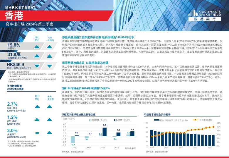 【戴德梁行】【20240630】第二季度香港写字楼、零售、物流及资本市场报告-8页