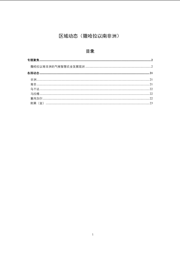 农业政策 可持续发展 撒哈拉以南非洲 食品安全 气候智慧农业