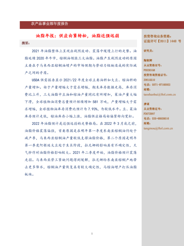 【弘业期货】【20211217】油脂年报:供应由紧转松,油脂近强远弱-25页