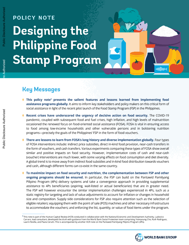 世界银行 政策说明 社会援助 菲律宾 食品券计划