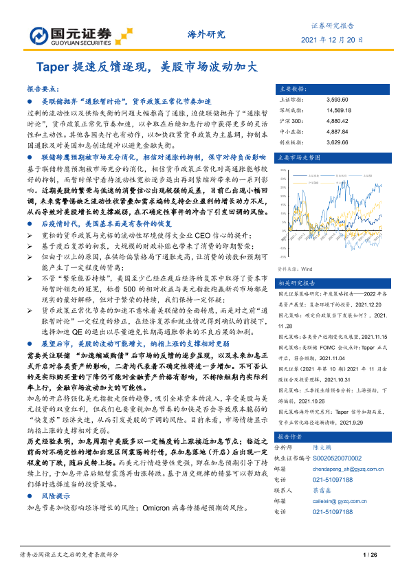 【国元证券】【20211220】海外研究:Taper提速反馈逐现,美股市场波动加大-26页