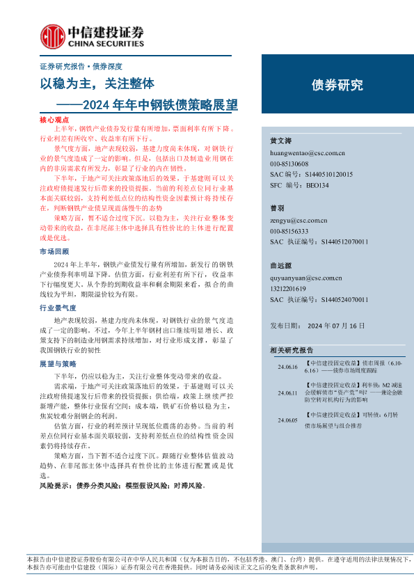 【中信建投证券】【20240716】2024年年中钢铁债策略展望:以稳为主,关注整体-15页