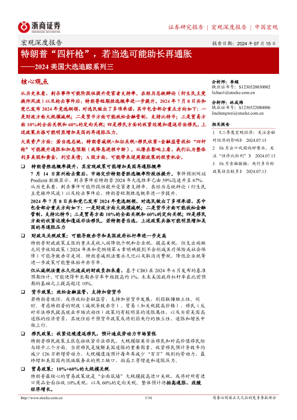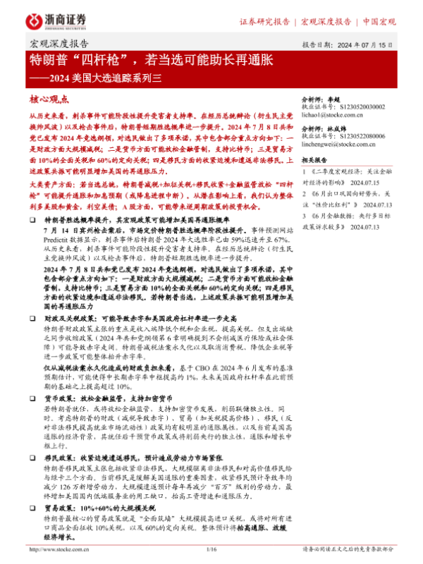 【浙商证券】【20240715】2024美国大选追踪系列三:特朗普“四杆枪”,若当选可能助长再通胀-16页