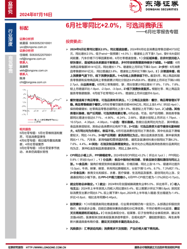 【东海证券】【20240716】6月社零同比+2.0%,可选消费承压-17页