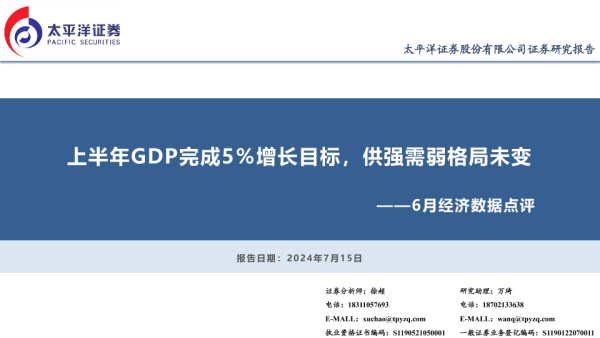 【太平洋证券】【20240715】6月经济数据点评:上半年GDP完成5%增长目标,供强需弱格局未变-17页