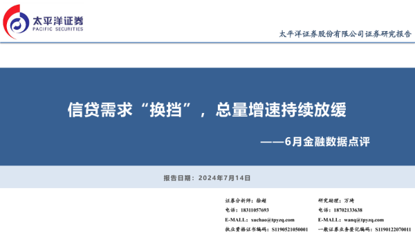 【太平洋证券】【20240714】6月金融数据点评:信贷需求“换挡”,总量增速持续放缓-15页