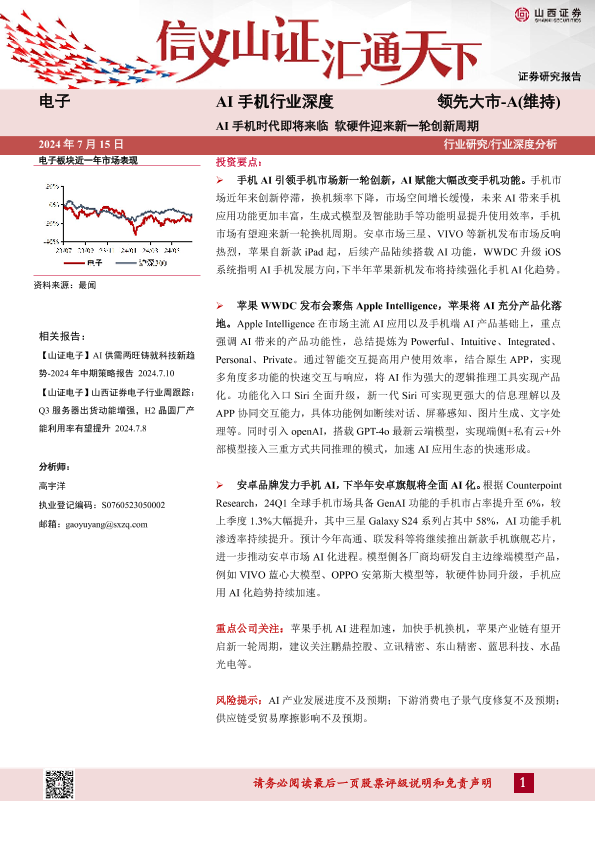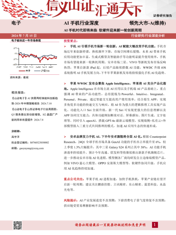 【山西证券】【20240715】AI手机行业深度:AI手机时代即将来临,软硬件迎来新一轮创新周期-33页