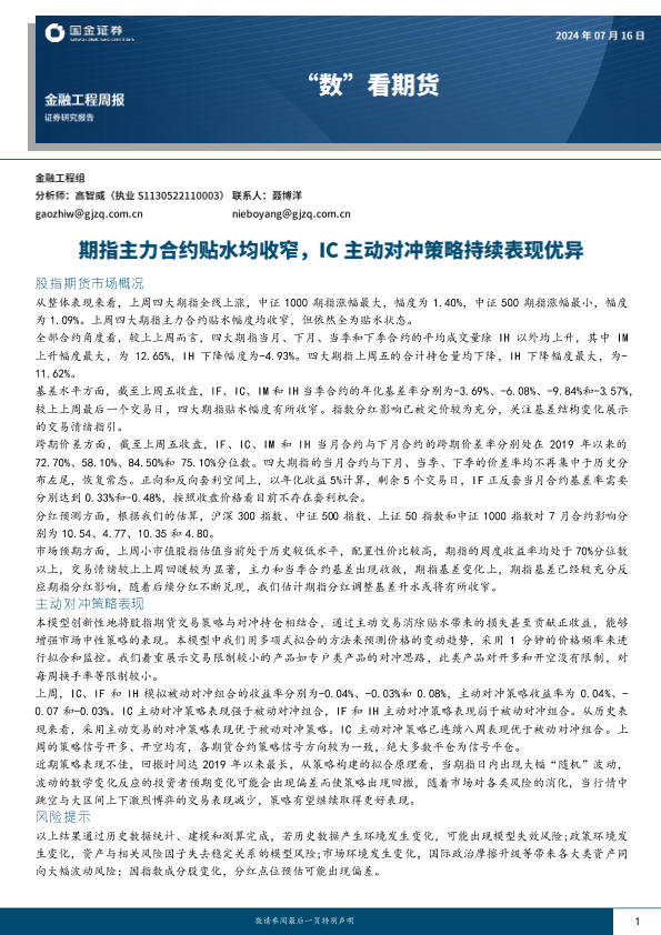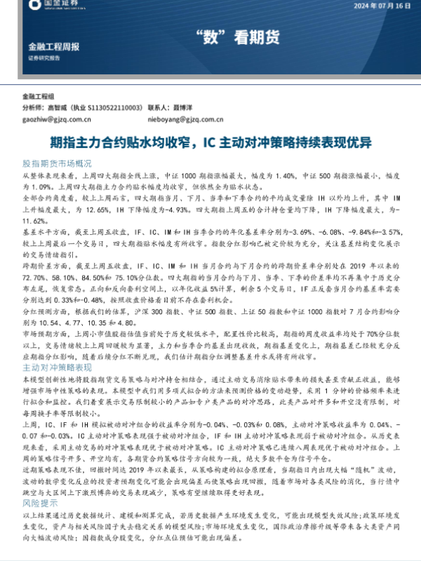 【国金证券】【20240716】“数”看期货:期指主力合约贴水均收窄,IC主动对冲策略持续表现优异-12页