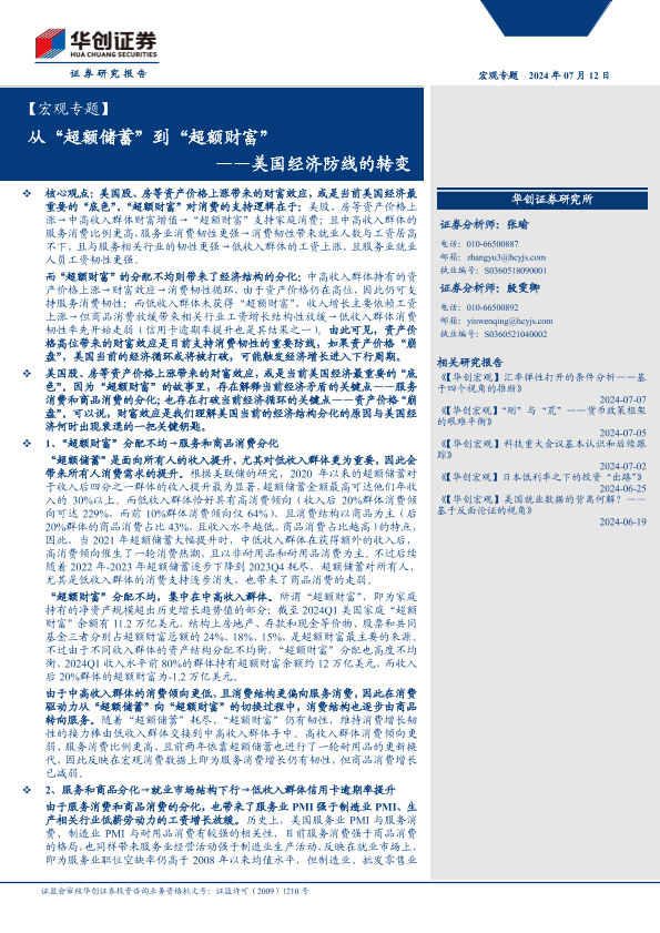 【华创证券】【20240712】美国经济防线的转变:从“超额储蓄”到“超额财富”-19页
