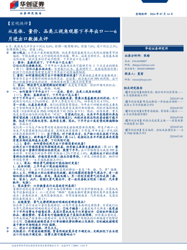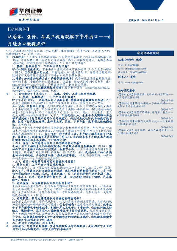 【华创证券】【20240714】从总体、量价、品类三视角观察下半年出口——6月进出口数据点评-18页