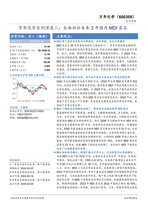 【华安证券】【20240716】万华化学(600309)系列深度二:全面拆分未来3年国内MDI需求-42页