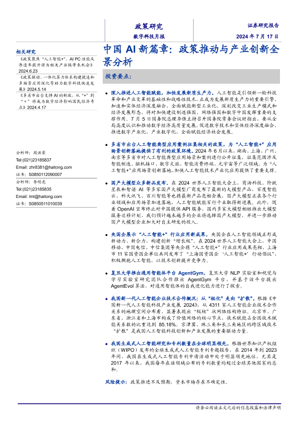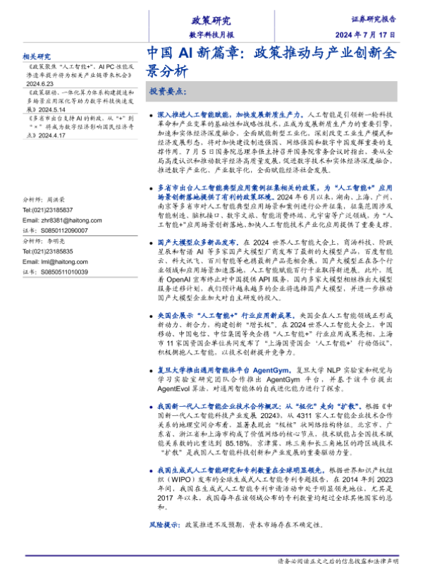 【海通证券】【20240717】中国 AI新篇章:政策推动与产业创新全景分析-21页