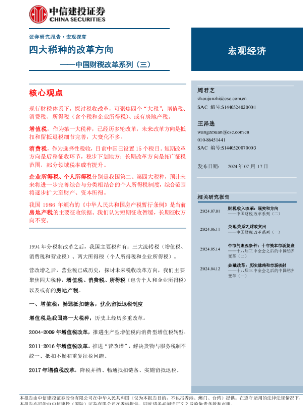 【中信建投证券】【20240717】中国财税改革系列(三):四大税种的改革方向-16页