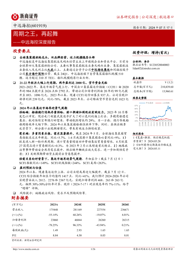 【浙商证券】【20240717】中远海控(601919)深度报告:周期之王,再起舞-24页