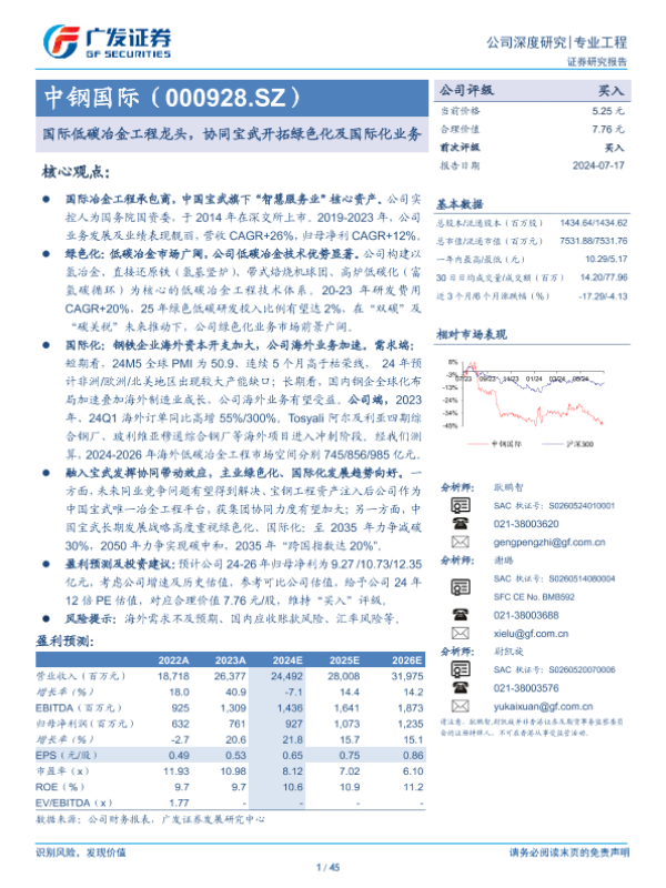 【广发证券】【20240717】中钢国际(000928.SZ)国际低碳冶金工程龙头,协同宝武开拓绿色化及国际化业务-45页